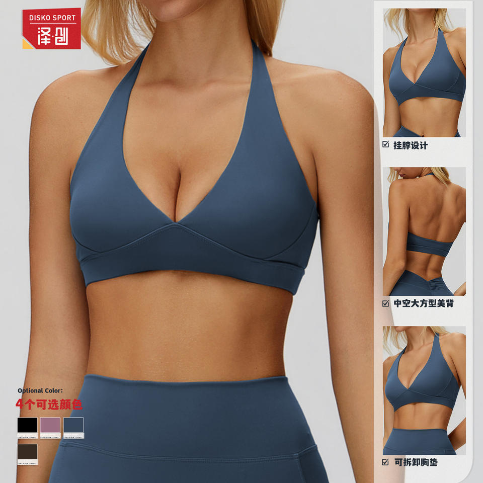 Disko Sport Yoga Bra Halter Neck Molded Cup Sports Bra Medium Support Fitness Running Bra EWX9308