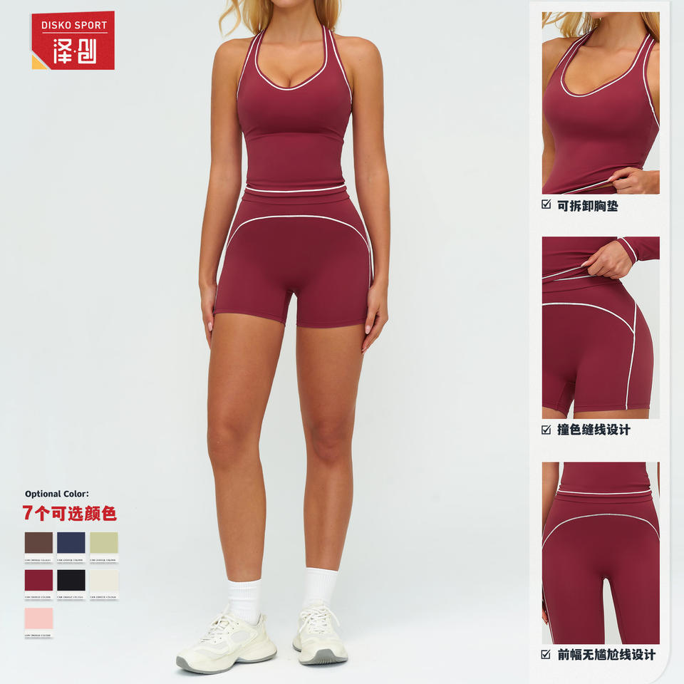 ดิสโก้ สปอร์ต โยคะ เซ็ต ชุดออกกำลังกายเอวสูง คอกลม แขนกุด ผ้าสี่ทิศทางยืดได้ ตะเข็บตัดกัน สำหรับผู้หญิง รุ่น 7028