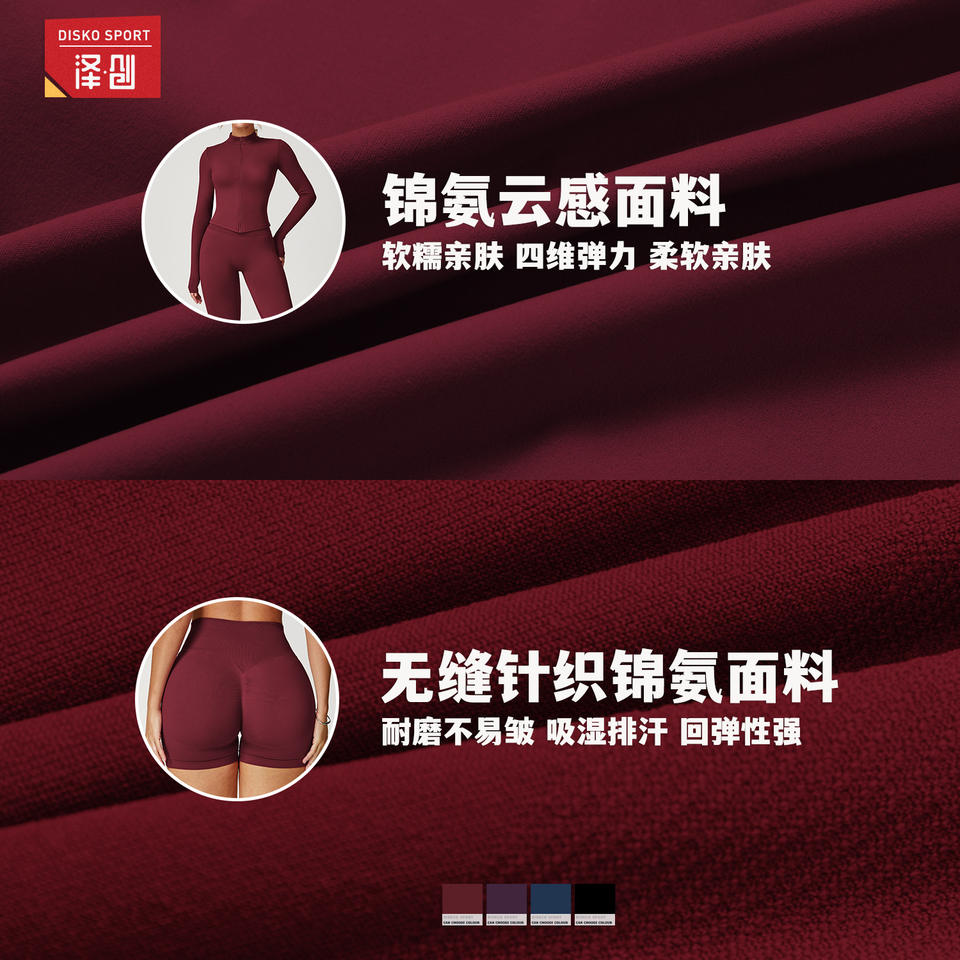 ดิสโก้ สปอร์ต โยคะชุดผู้หญิงคอเต่าสีทึบชุดสองชิ้นแห้งเร็วชุดออกกำลังกายสำหรับวิ่งออกกำลังกาย TZ85037655