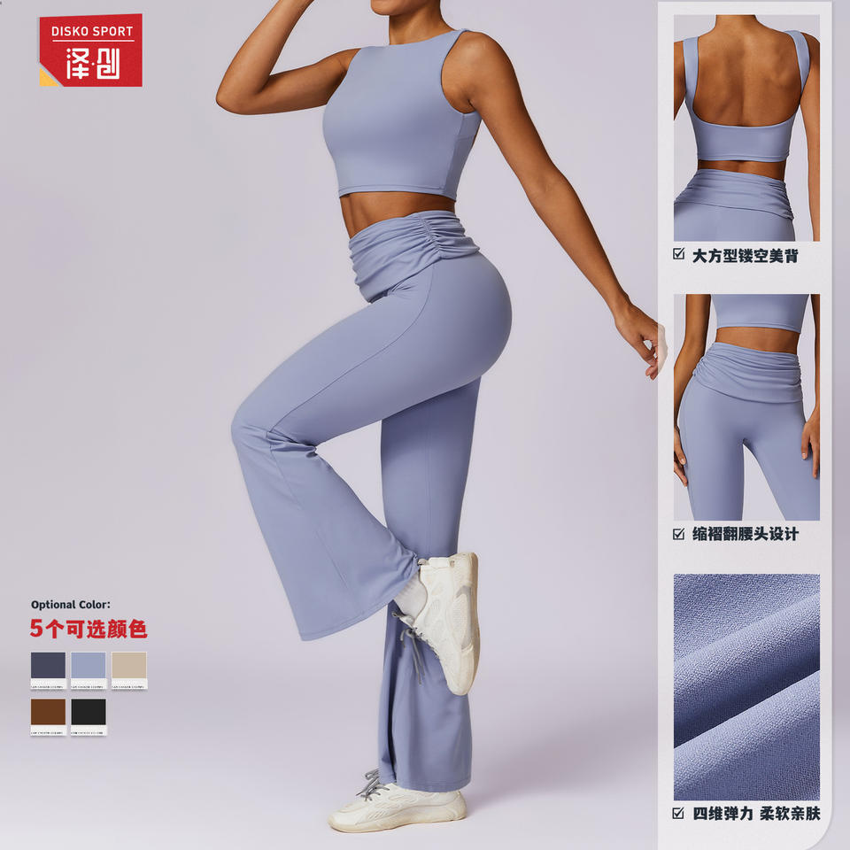 Disko Sport Yoga Set Women's Backless Square Neck 2 Piece Solid ColorTZ8516 Breathable Quick Dry Fitness Clothing