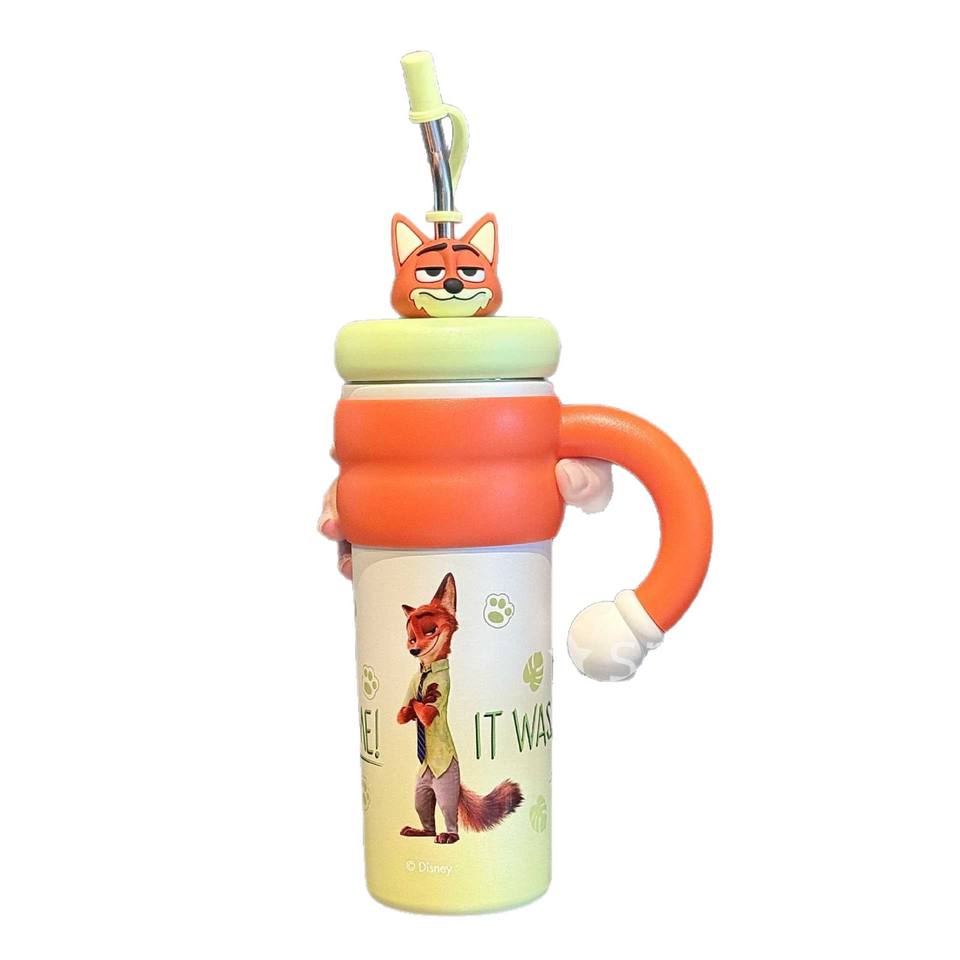 ดิสนีย์ ซูโทเปีย นิค ไวลด์ขวดน้ำเก็บความเย็น 500 มล. พร้อมหลอดและหูจับสำหรับเด็กและผู้หญิง