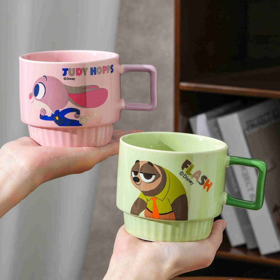 ดิสนีย์ ซูโทเปียชุดแก้วกาแฟแบบซ้อนได้ 2 ชิ้นพร้อมที่จับดีไซน์การ์ตูนสำหรับเด็กและผู้ใหญ่ของขวัญ