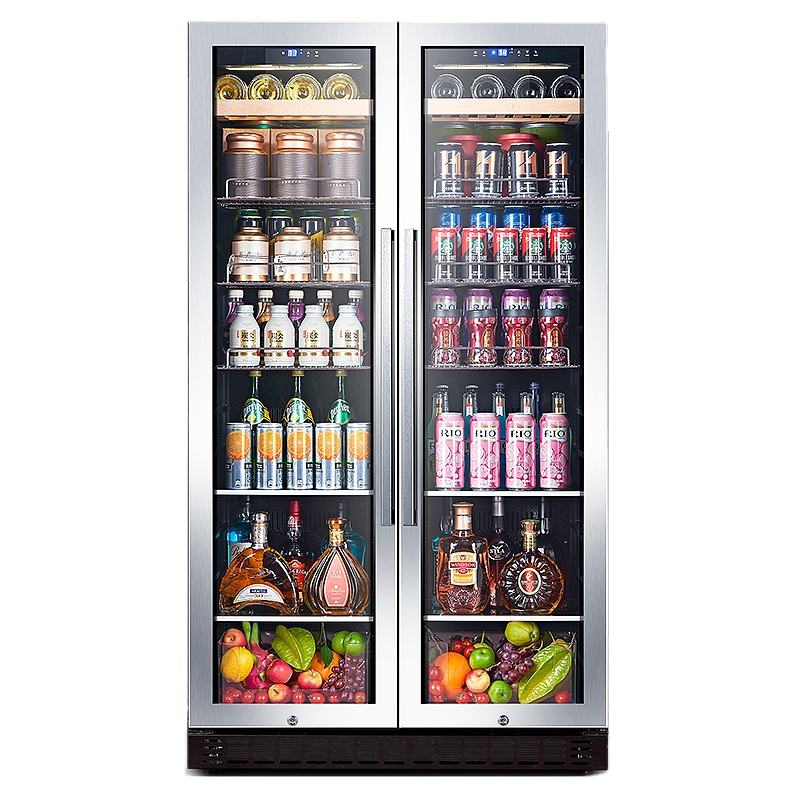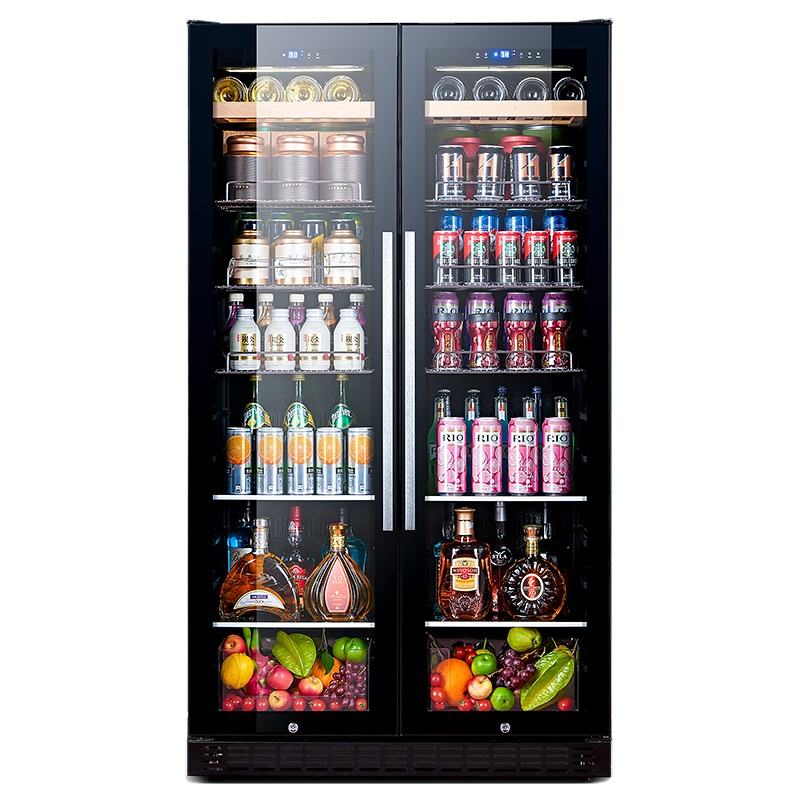 แสดงบ้านตู้เย็นบาร์เชิงพาณิชย์สองประตูเป๊ปซี่ไวน์เค้กเครื่องดื่มเย็นตู้เย็นตู้โชว์เครื่องทําความเย็น