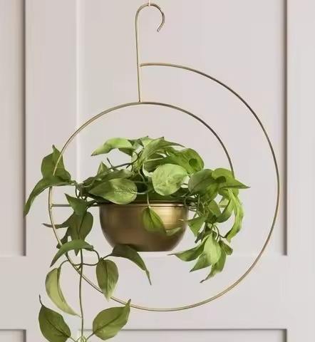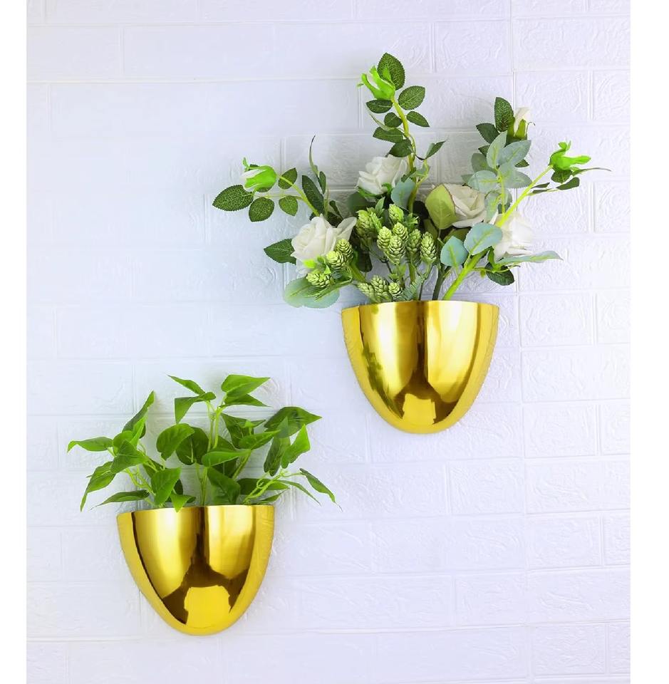 กระถางต้นไม้ติดผนังสำหรับตกแต่งภายนอกและภายใน กระถางดอกไม้โลหะสีทองโครเมียม ดีไซน์ร่วมสมัย คุณภาพสูง
