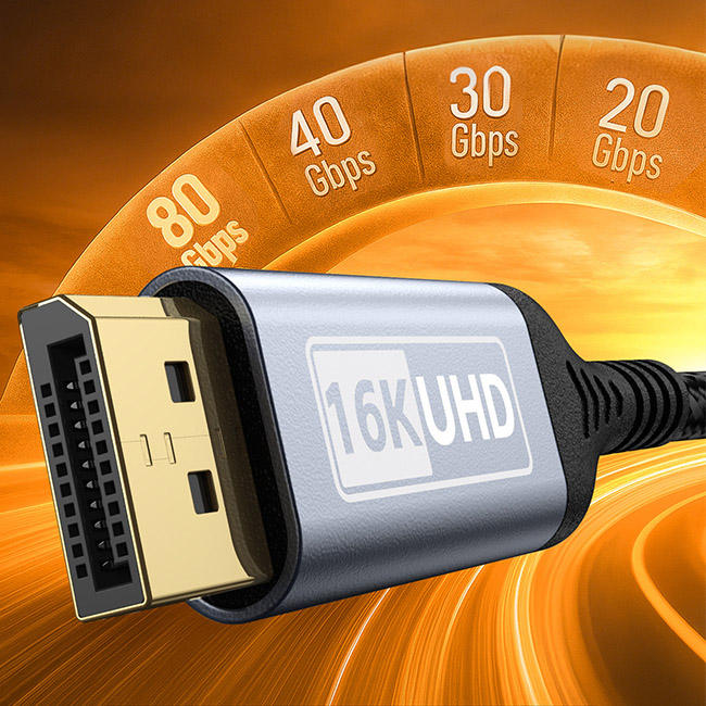 สายดิสเพลย์พอร์ต 2.1 2 เมตร 16K 80Gbps ดิสเพลย์พอร์ต 16K 60Hz 8K 240Hz HBR3 4K 240Hz