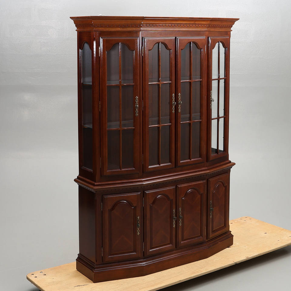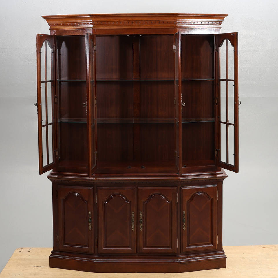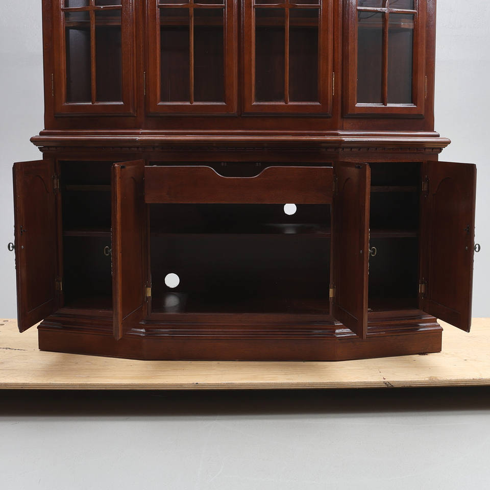 ตู้โชว์ทำจากไม้มะฮอกกานีแท้คุณภาพสูง พร้อมกระจกใสสีน้ำตาลเข้ม เหมาะสำหรับห้องนั่งเล่น