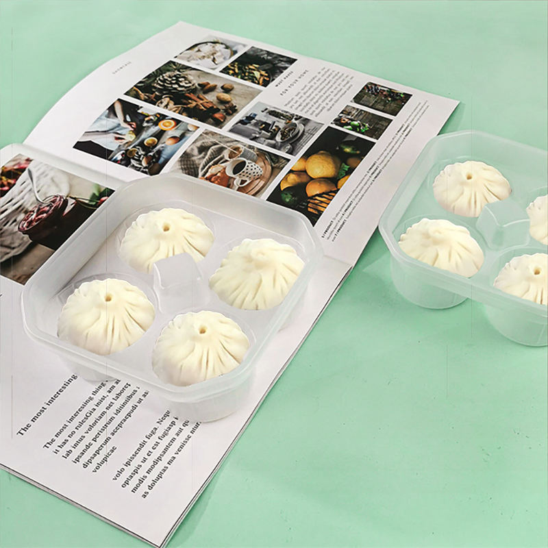 กล่องใส่ขนมพลาสติก PP แบบใช้แล้วทิ้ง4ช่องถาดใส่ขนมปังนึ่งกันแช่แข็งอาหารมีฝาปิดสำหรับใช้ในร้านอาหาร
