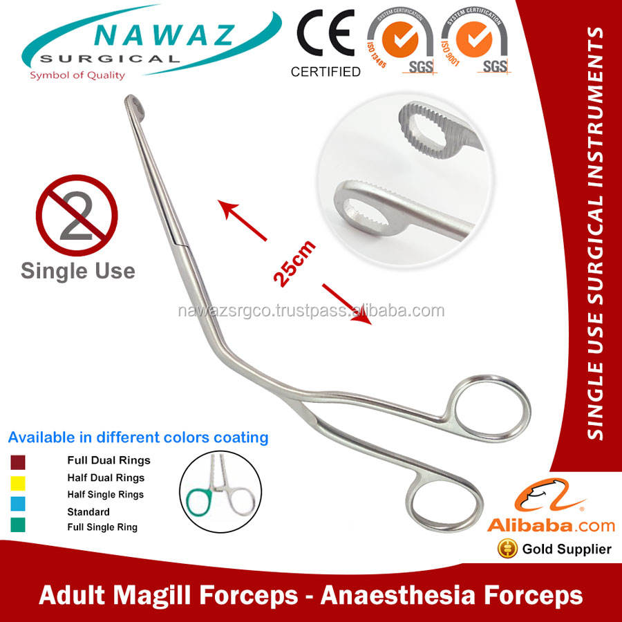 คีมแมกิลสำหรับผู้ใหญ่แบบใช้แล้วทิ้ง 25 ซม., คีมแมกิล คีมสำหรับการดมยาสลบ, คีมสำหรับใส่สายสวน