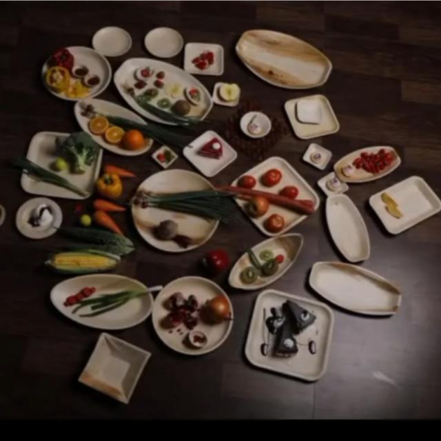 ชุดภาชนะและเครื่องใช้บนโต๊ะอาหารใบไผ่แบบใช้แล้วทิ้งรูปทรงและขนาดต่างๆสำหรับใช้ในชีวิตประจำวันงานปาร์ตี้งานแต่งงาน