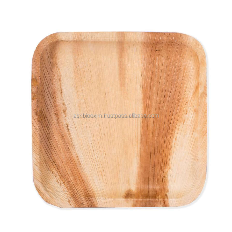 จานสี่เหลี่ยมไม้ไผ่ ไม้ปาล์มอะรีกา ย่อยสลายได้ทางชีวภาพ ใช้แล้วทิ้ง ได้รับการรับรองมาตรฐาน ISO ดีไซน์คลาสสิก สำหรับงานปาร์ตี้ ใช้ในบ้าน โรงแรม สวยงาม