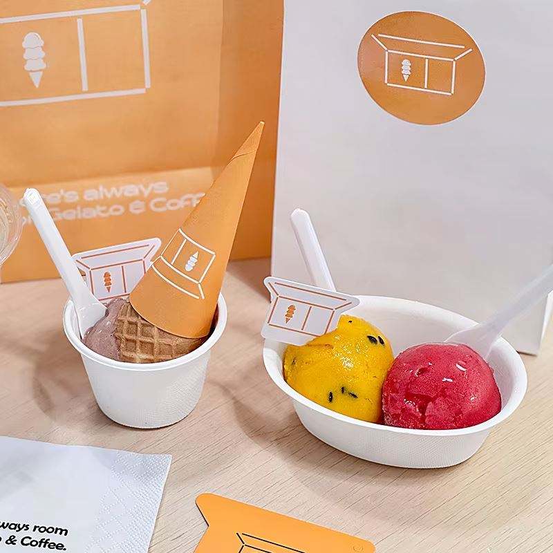ถ้วยไอศกรีมแบบใช้แล้วทิ้ง ย่อยสลายได้ ขนาด 200 มล. สำหรับเจลาโต โยเกิร์ต และสมูทตี้ บรรจุภัณฑ์เชิงพาณิชย์แบบกำหนดเอง