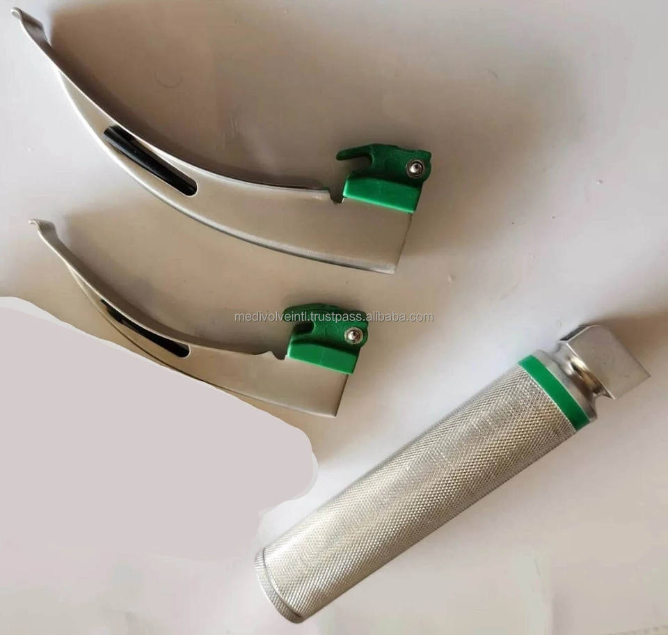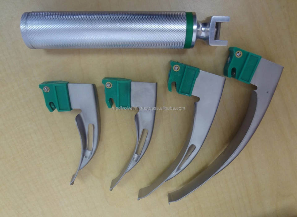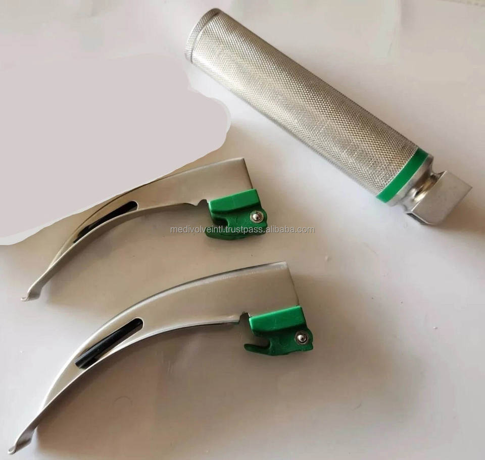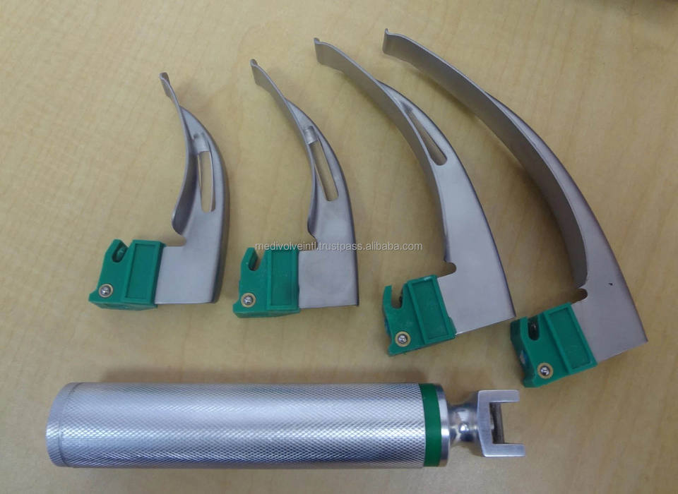 ชุดเครื่องมือส่องกล่องเสียงแบบใช้แล้วทิ้งชนิดใยแก้วนำแสงสำหรับสัตว์ ยี่ห้อ Macintosh รุ่น MI-600136 ผลิตจากสแตนเลส ได้รับการรับรองมาตรฐาน CE จาก Medivolve