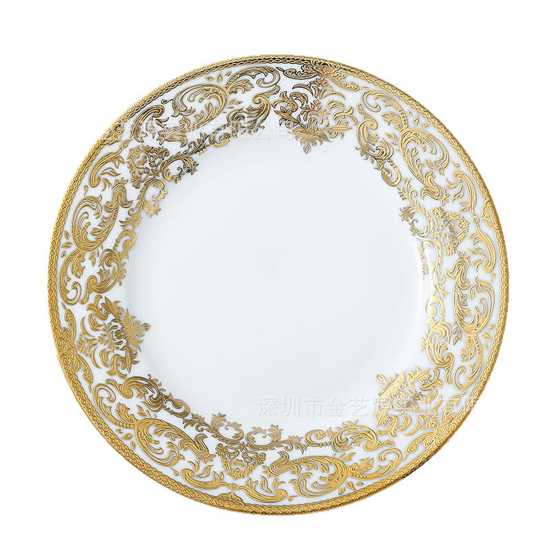 ชุดจานเซรามิกพอร์ซเลนลายผลไม้แบบใช้แล้วทิ้ง ลายนูนเคลือบด้วยไฟฟ้า พร้อมโลโก้สั่งทำ จานแบนสไตล์พนมเปญ