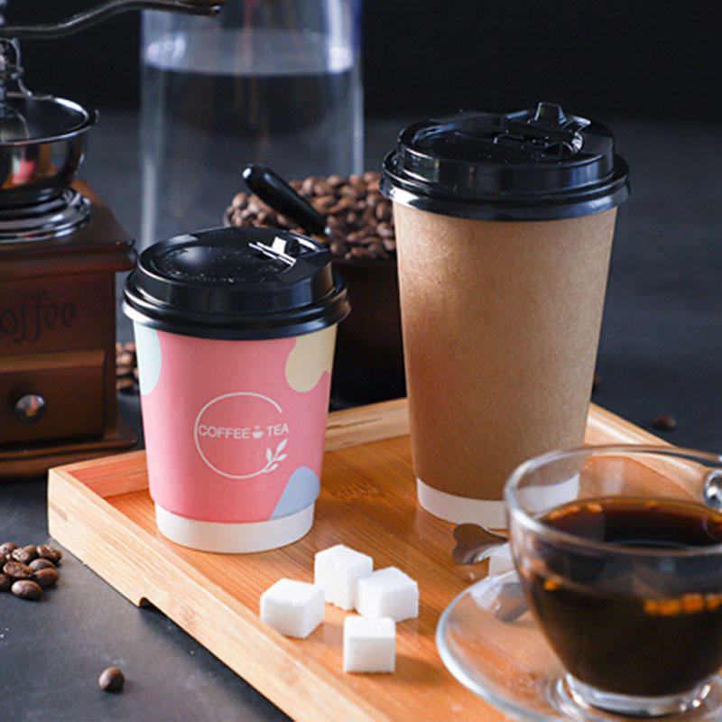 ถ้วยกาแฟแบบใช้แล้วทิ้งพร้อมฝาปิดชุดโลโก้ที่กำหนดเองสำหรับไปเครื่องดื่มเย็นถ้วยชาช็อกโกแลตร้อนสำหรับร้านกาแฟ
