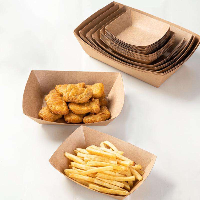 กล่องกระดาษคราฟท์แบบใช้แล้วทิ้งสำหรับปิกนิก รูปทรงเรือ สำหรับขายขนม ไก่ทอด บาร์บีคิว เฟรนช์ฟรายส์ พร้อมจานกระดาษและชามกระดาษแบบใช้แล้วทิ้ง
