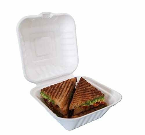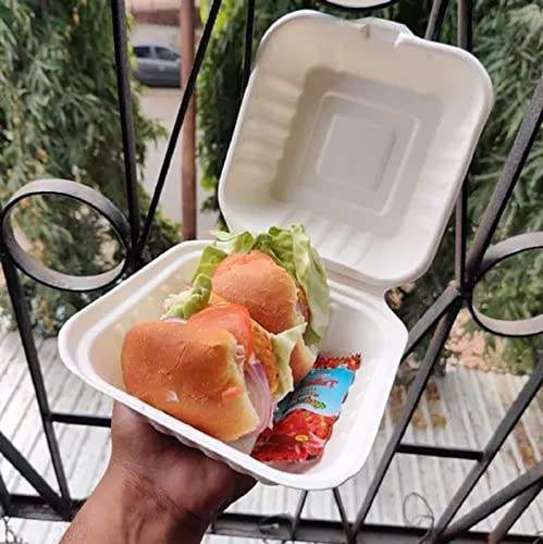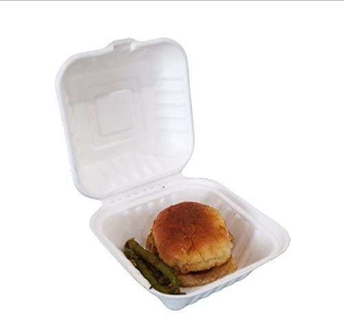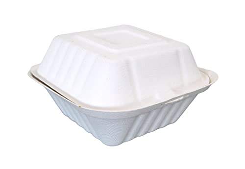 กล่องเบอร์เกอร์6x6นิ้วแบบมีฝาปิดภาชนะใส่อาหารกลับบ้านเร็วกล่องใส่อาหารแบบฝาพับทำจากชานอ้อยปลอดภัยใช้แล้วทิ้งเป็นมิตรต่อสิ่งแวดล้อม