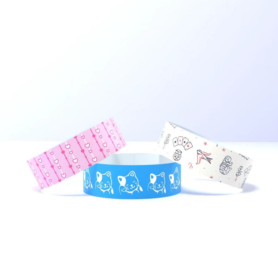สายรัดข้อมือกระดาษพิมพ์ลายดิจิทัลแบบใช้แล้วทิ้ง เป็นมิตรกับสิ่งแวดล้อม สไตล์อนิเมะ ดีไซน์สีสันตามสั่ง บรรจุภัณฑ์แบบขายส่ง สำหรับงานปาร์ตี้วันหยุด
