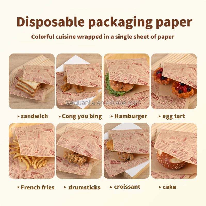 กระดาษห่ออาหารแบบใช้แล้วทิ้ง เป็นมิตรกับสิ่งแวดล้อม เกรดสำหรับอาหาร เคลือบ PE กันไขมัน สำหรับแซนวิช เบอร์เกอร์ เค้ก และขนมปัง - ขนาดตามสั่ง