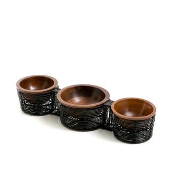 ชามเสิร์ฟอาหารแบบใช้แล้วทิ้ง เป็นมิตรกับสิ่งแวดล้อม สีดำเคลือบผงเหล็กและไม้ไผ่ สำหรับโรงแรม ร้านอาหาร งานแต่งงาน และงานอีเว้นท์ต่างๆ