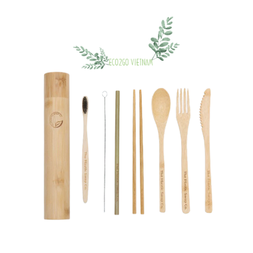 ชุดช้อนส้อมไม้ไผ่เป็นมิตรกับสิ่งแวดล้อมแบบนำกลับมาใช้ใหม่ได้ชุดช้อนส้อมไม้ไผ่พร้อมโลโก้คุณภาพสูงจากผู้ผลิต Eco2go เวียดนาม