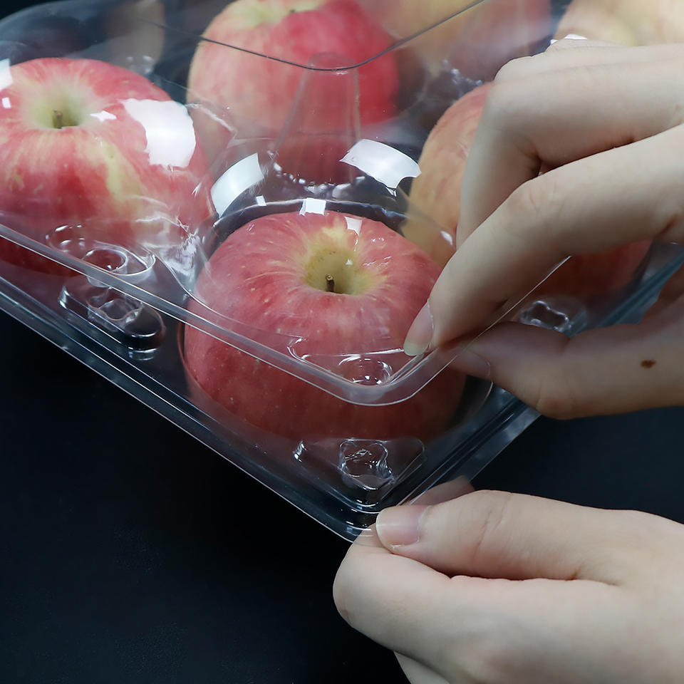 ถาดใส่ผลไม้แบบใช้แล้วทิ้งพร้อมฝาปิดกล่องบรรจุแอปเปิ้ลเกรดอาหารสำหรับใส่ผลไม้