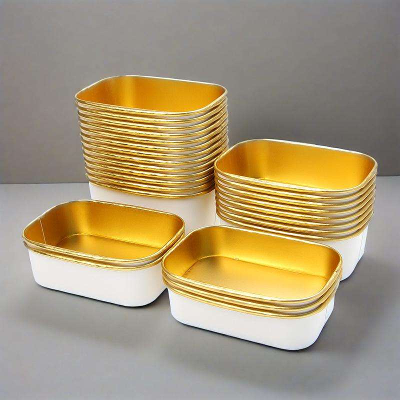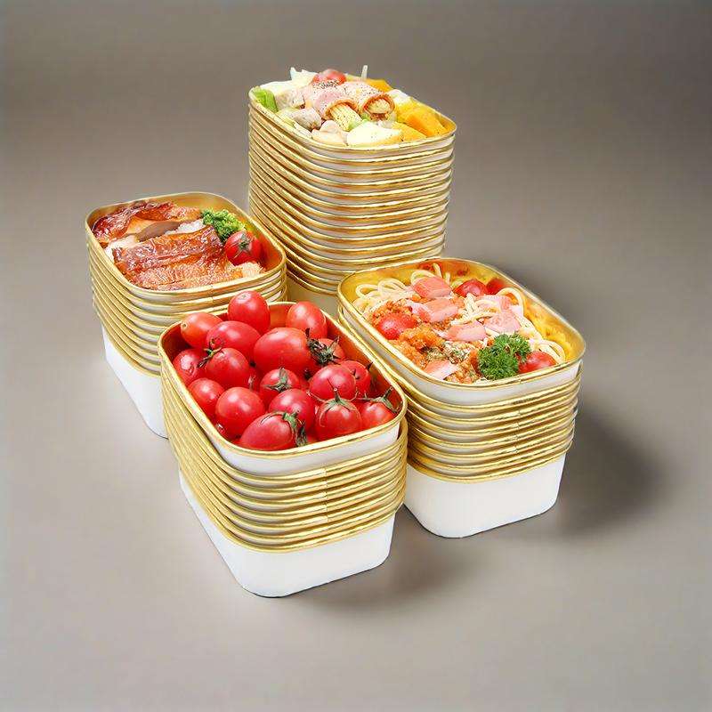 Disposable Gold Foil Paper Bowl Food Grade Fast Food Container Take Away Salad Fast Kraft Paper Packaging Bowl