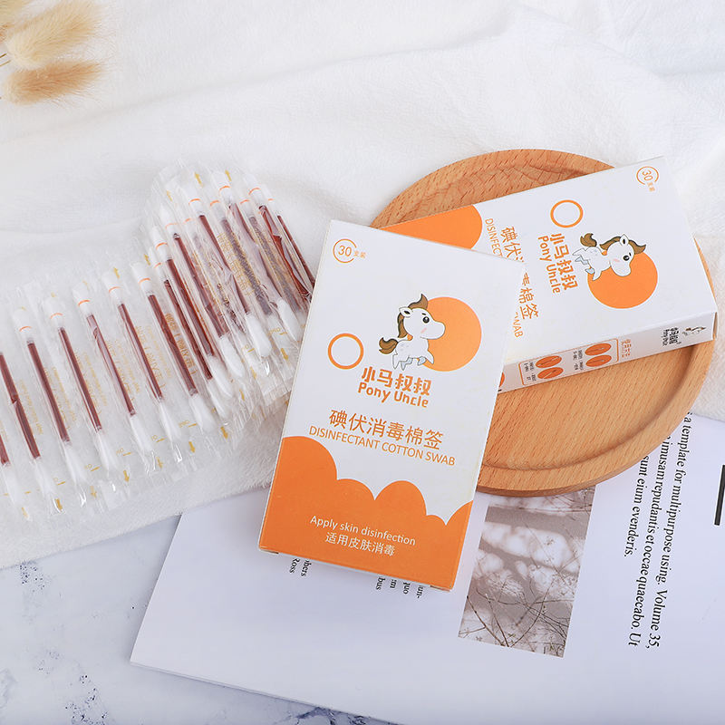 สำลีพันก้านแอลกอฮอล์บรรจุน้ำยาไอโอดีนแบบใช้แล้วทิ้ง