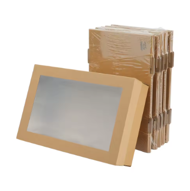 กล่องกระดาษคราฟท์แบบใช้แล้วทิ้งสำหรับปิกนิกกลางแจ้ง กล่องมีฝาปิดแบบมีหน้าต่างสำหรับบรรจุแซนวิช พิซซ่า กล่องกระดาษแข็งแบบมีฝาปิด