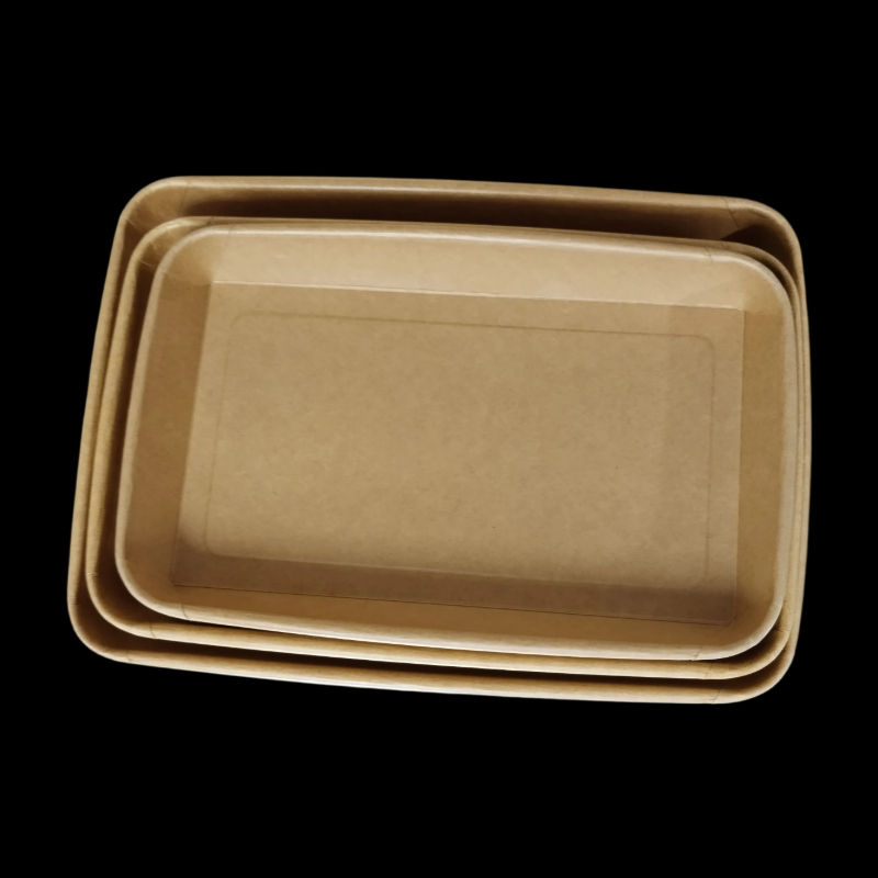 กระดาษคราฟท์ย่อยสลายได้300มล. ชามสลัดทรงสี่เหลี่ยมผืนผ้ากระดาษคราฟท์เกรดอาหารสำหรับเรือขนมขบเคี้ยว