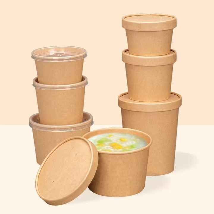 ถ้วยซุปกระดาษคราฟท์แบบใช้แล้วทิ้ง เป็นมิตรกับสิ่งแวดล้อม รีไซเคิลได้ พร้อมฝาปิดปั๊มฟอยล์สีทอง สำหรับบรรจุภัณฑ์กาแฟ ซุปร้อน อาหารว่าง