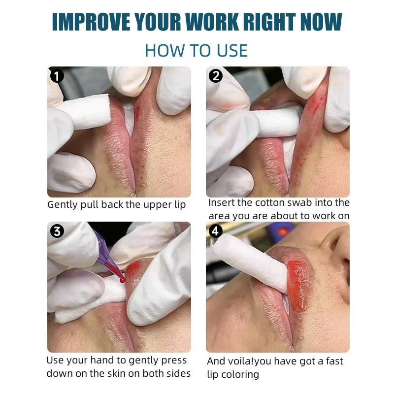 เครื่องมือสักลายริมฝีปากแบบใช้แล้วทิ้งแท่งผ้าพันสำหรับการแต่งหน้าถาวรทำมือสำหรับริมฝีปากคอตตอนริมฝีปาก