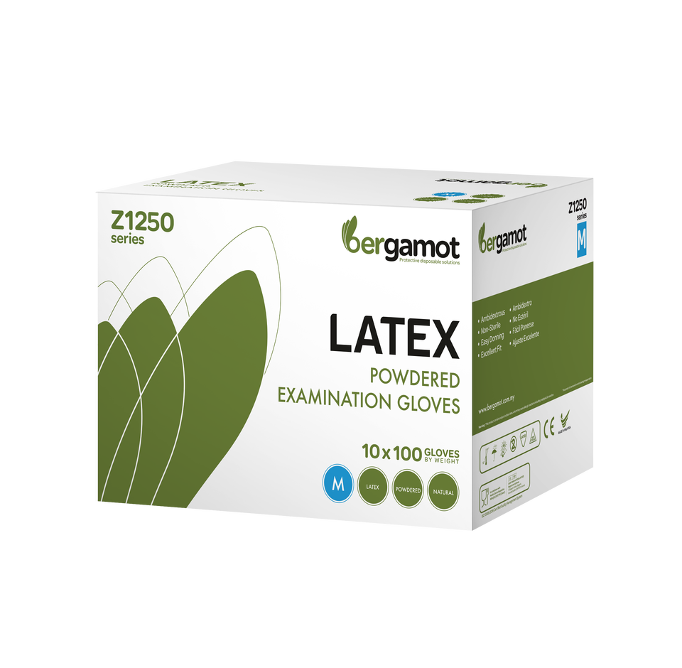 Disposable Medical Natural Latex Gloves for Dental Care Healthcare CE Certified 240mm Length Powdered Malaysia Bergamot