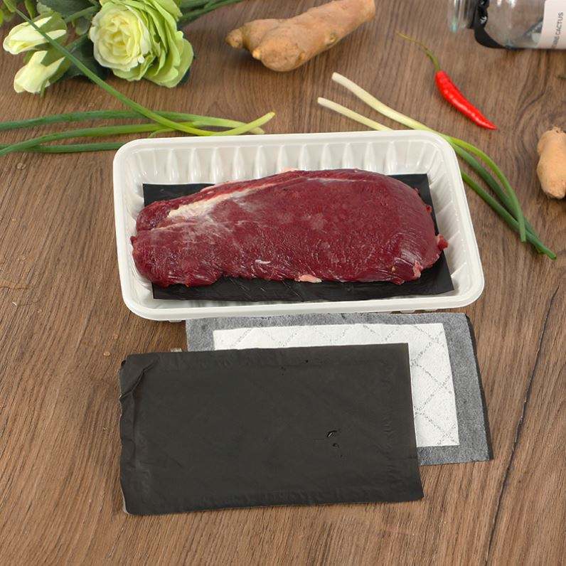 แผ่นซับความชื้นแบบใช้แล้วทิ้งสำหรับบรรจุภัณฑ์เนื้อสัตว์ ปลา และเนื้อไก่ ใช้งานได้ 7 วัน เกรดอาหาร เป็นมิตรกับสิ่งแวดล้อม ขนาด 130x80 มม. หรือสั่งทำพิเศษ 40 มล./ชิ้น
