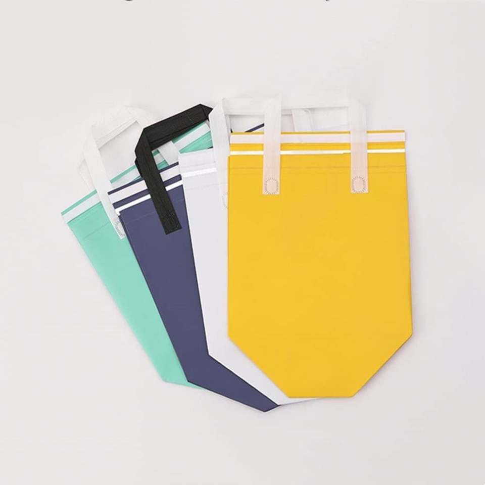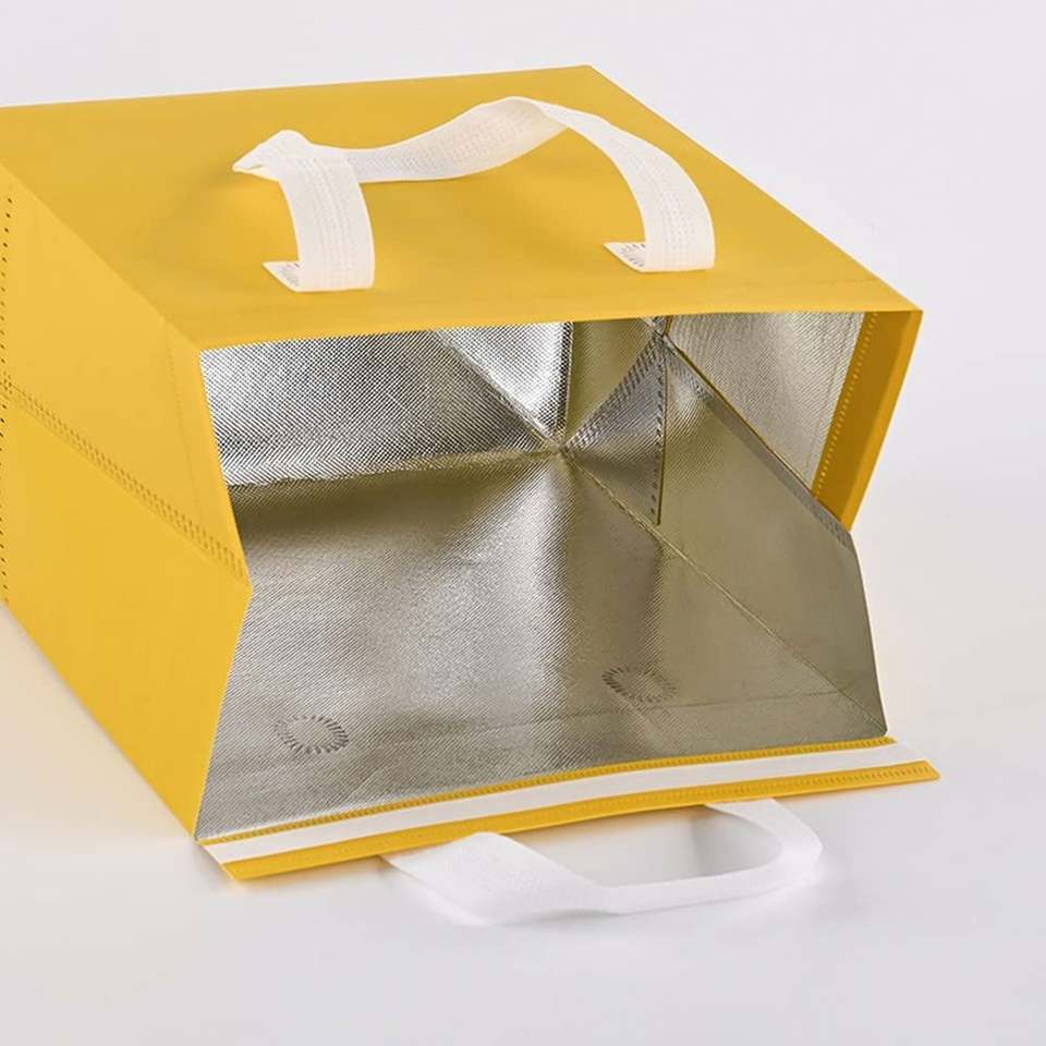 ถุงหิ้วแบบใช้แล้วทิ้ง ผลิตจากผ้าไม่ถักทอ บุด้วยอลูมิเนียมฟอยล์ สำหรับส่งอาหารและเครื่องดื่ม รักษาอุณหภูมิได้ทั้งร้อนและเย็น