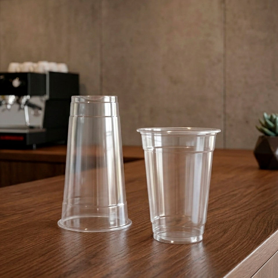แก้ว PP แบบใช้แล้วทิ้ง ขนาด 12/16/24 ออนซ์ พร้อมฝา 95 มม. แก้วพลาสติกใสแบบผนังเดียว สำหรับเครื่องดื่มร้อน/เย็น ชา กาแฟ