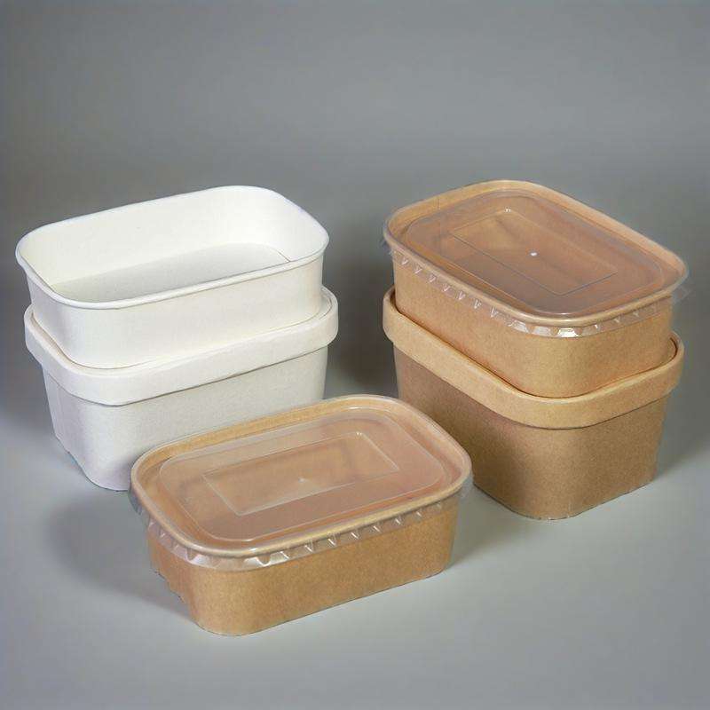 ชามกระดาษแบบใช้แล้วทิ้ง ภาชนะบรรจุอาหาร ชามอาหารแบบนำกลับบ้าน บรรจุภัณฑ์พร้อมฝาปิด ชามกระดาษรูปสี่เหลี่ยมผืนผ้าแบบใช้แล้วทิ้ง