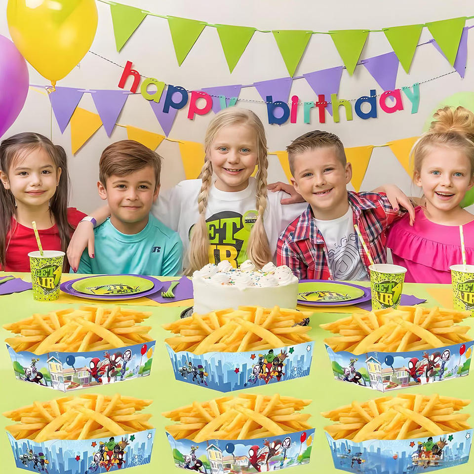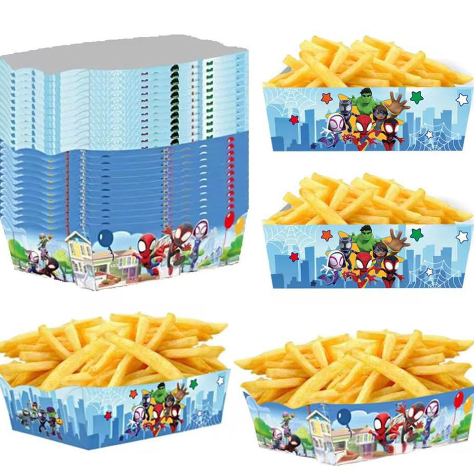 ถาดกระดาษใส่เฟรนช์ฟรายส์แบบใช้แล้วทิ้ง ดีไซน์กันรั่ว สำหรับบรรจุภัณฑ์อาหารจานด่วนแบบนำกลับบ้าน