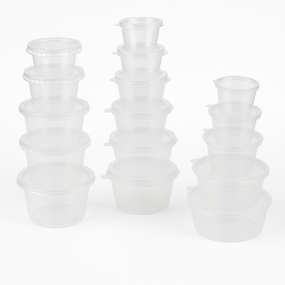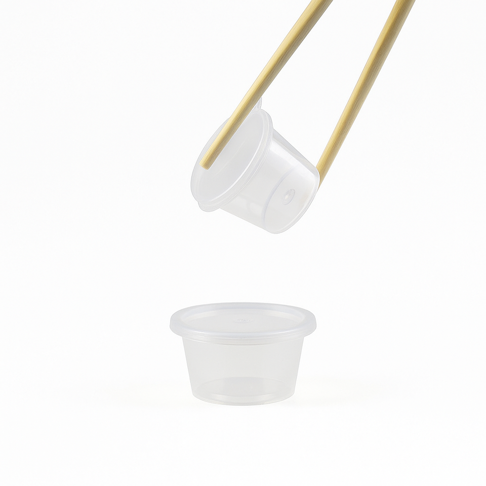 ถ้วยซอสพลาสติกทรงกลมแบบใช้แล้วทิ้งกล่องใส่ซอสแบบหนาสำหรับพกพา