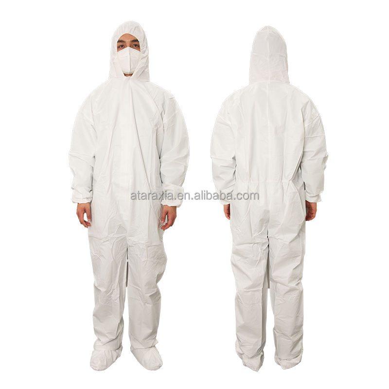 ชุดคลุมป้องกันทำจากโพลีโพรพิลีนแบบใช้แล้วทิ้งชุดป้องกัน PPE