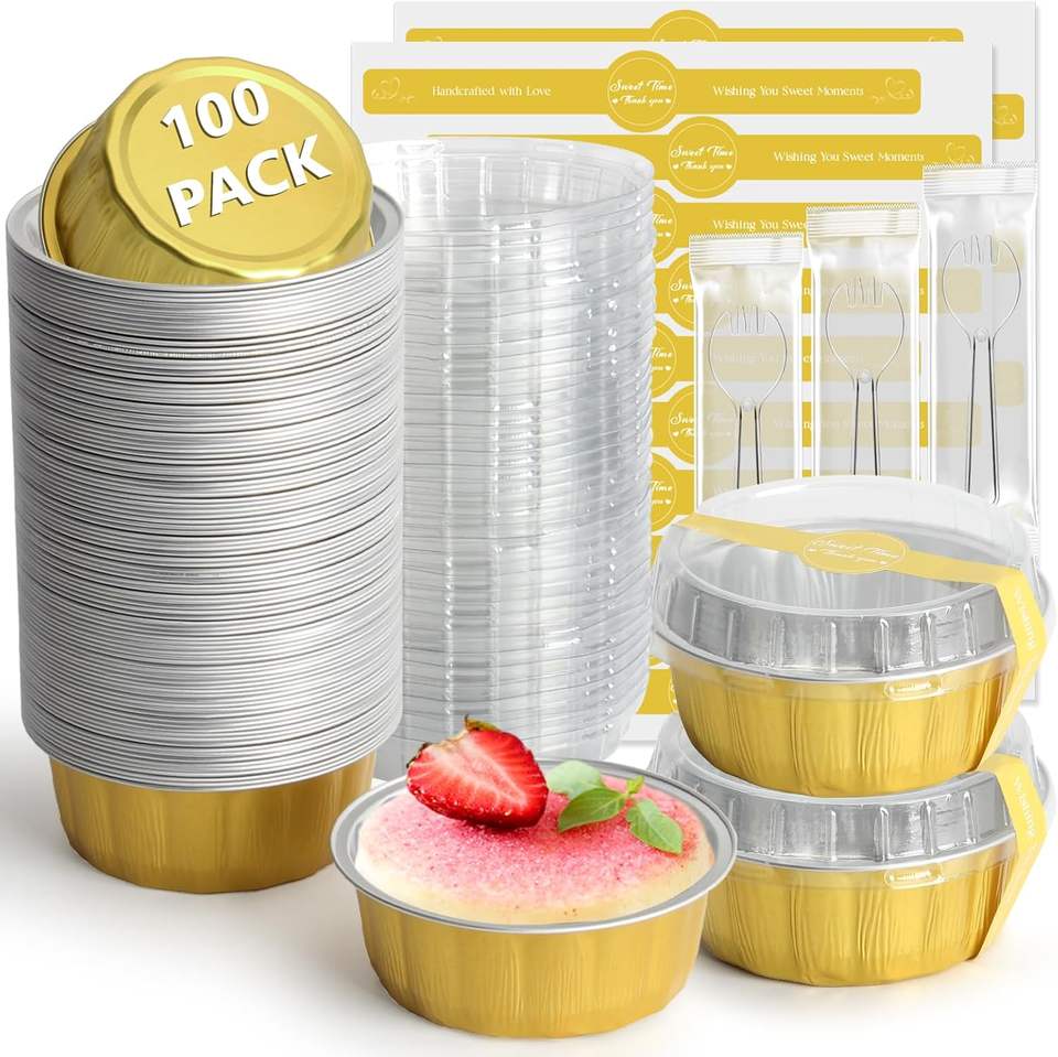 ถ้วยฟอยล์อลูมิเนียมพิมพ์ลายแบบใช้แล้วทิ้งสำหรับขนมหวาน ขนมอบ พร้อมฝาปิด ใช้กับข้าว คัพเค้ก อบในเตาได้ ปลอดภัยสำหรับอาหาร รับผลิตแบบ OEM