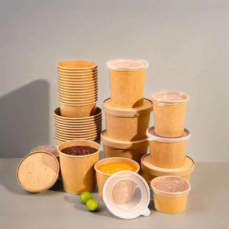 ถ้วยซุปกระดาษคราฟท์แบบใช้แล้วทิ้ง ถ้วยข้าวต้มกระดาษพร้อมฝาปิด มีสินค้าในสต็อก ถ้วยกระดาษ ฝาพลาสติก