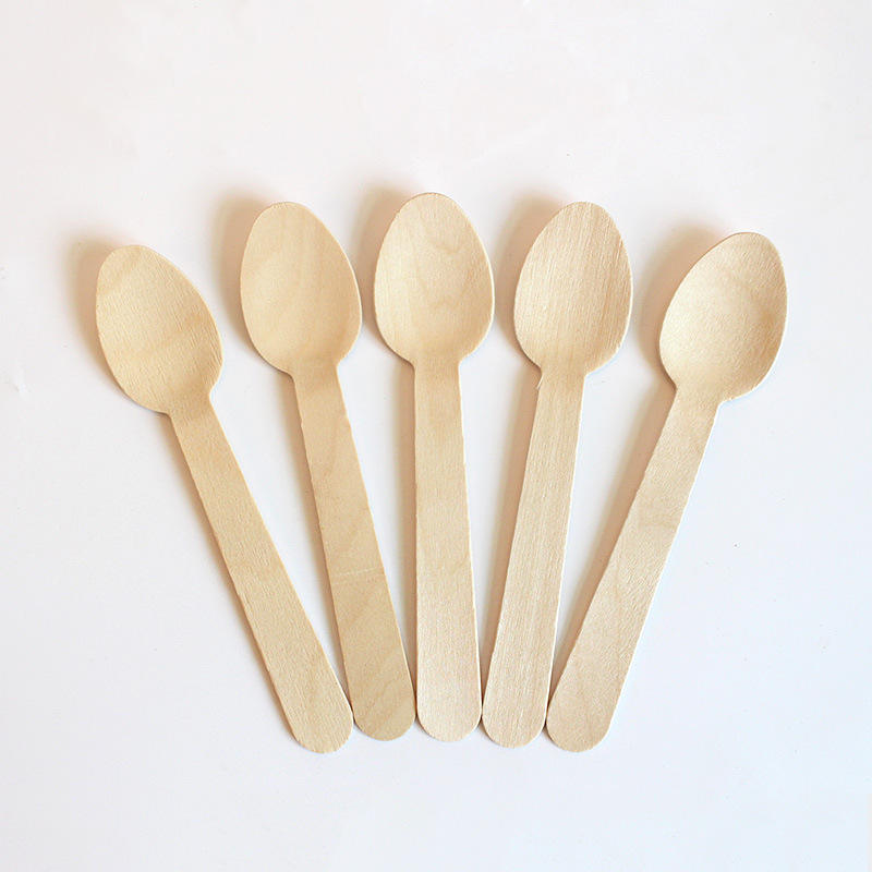 ช้อนไม้ธรรมชาติสำหรับรับประทานอาหารแบบใช้แล้วทิ้งสำหรับมื้ออาหารความยาว160มม. เป็นมิตรกับสิ่งแวดล้อมสำหรับเค้กสำหรับงานเลี้ยง