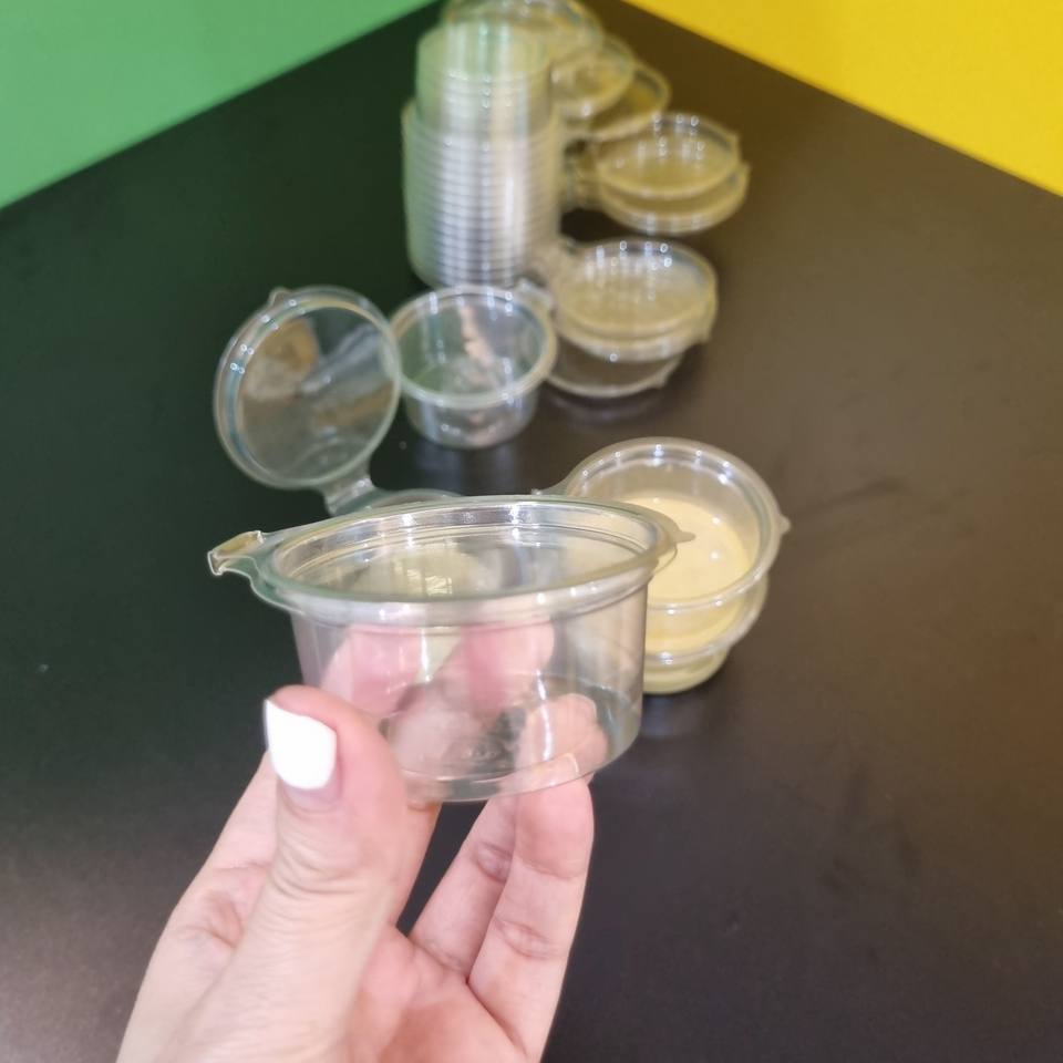 ถ้วยซอสพลาสติก PET ขนาด2ออนซ์60มล. พร้อมฝาบานพับ
