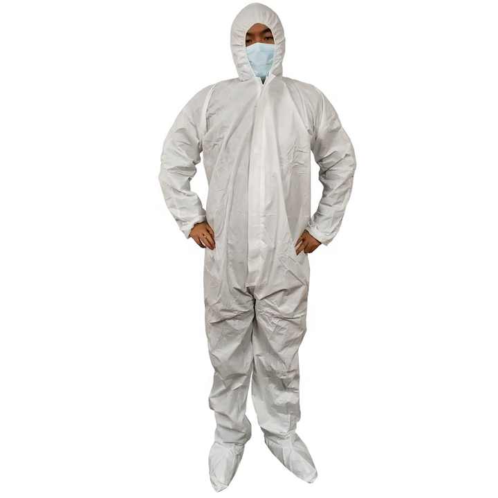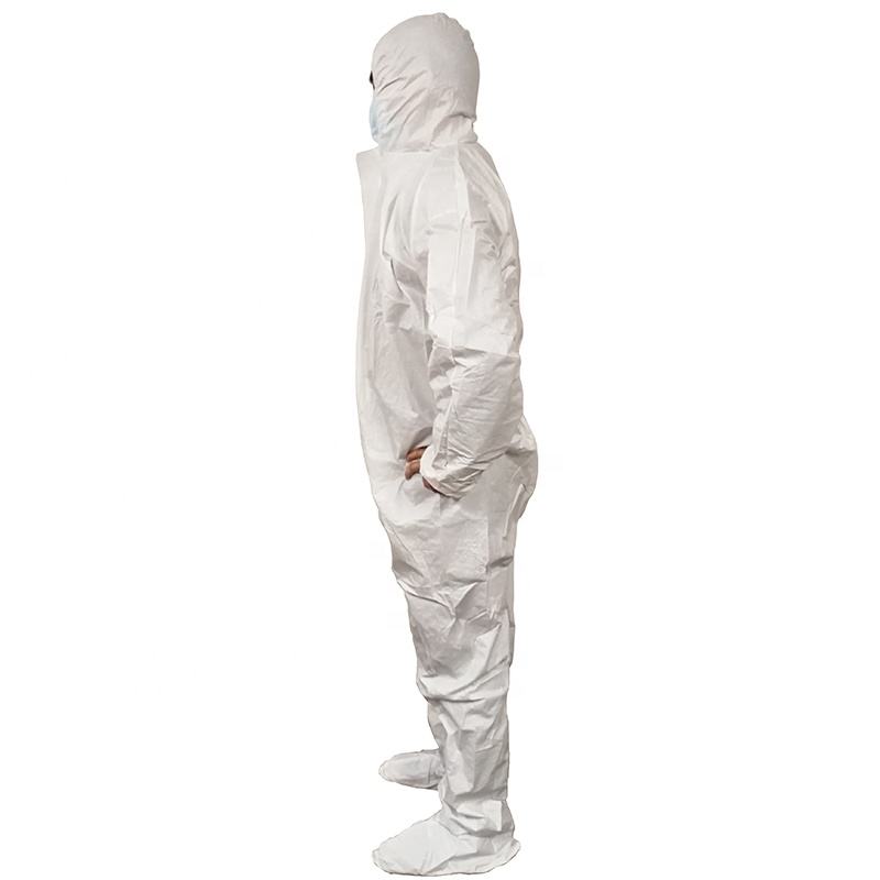 ชุดป้องกันสารเคมีแบบใช้แล้วทิ้ง กันน้ำ ผลิตจากผ้าไม่ถักทอ สีขาว สำหรับการแพทย์ มาตรฐาน EN 14126