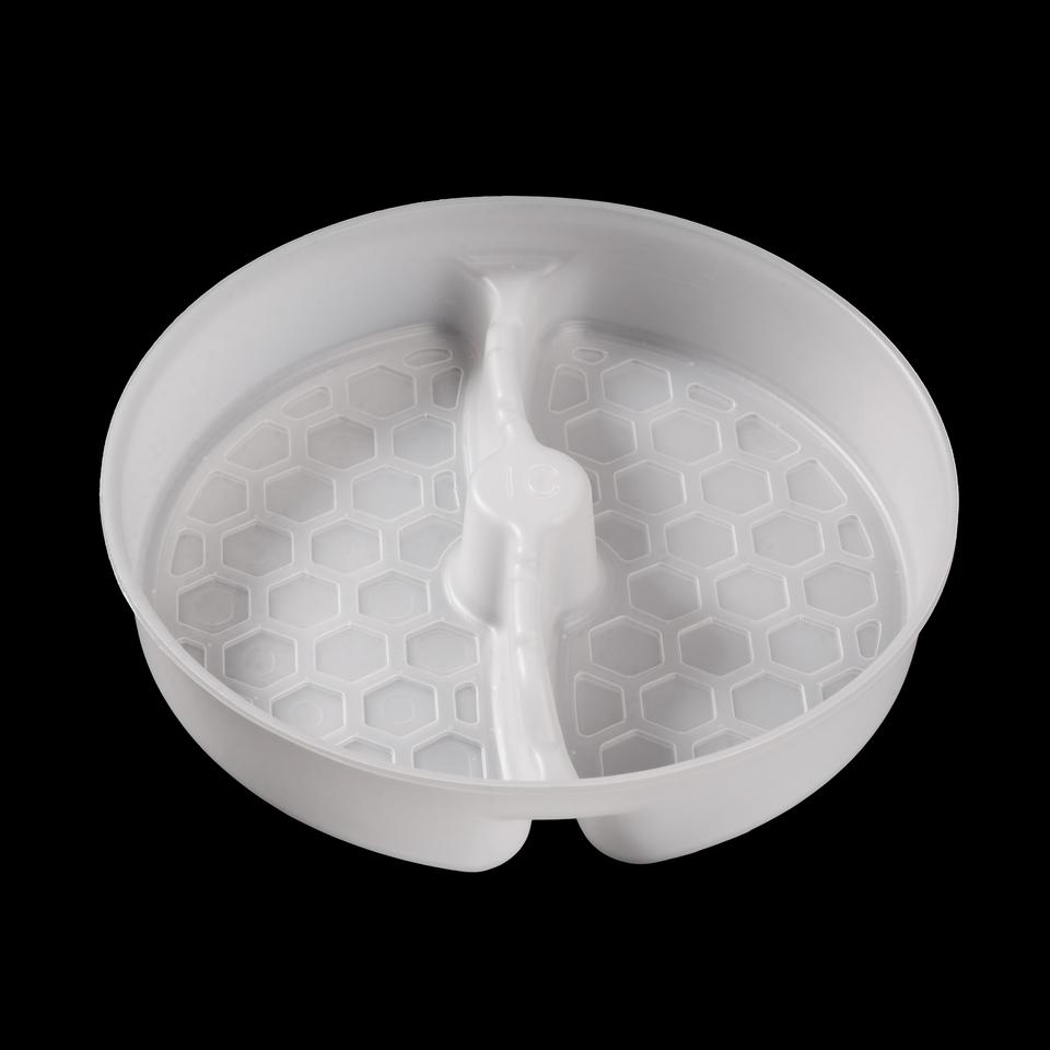 ถาดพลาสติก PP แบบกลม แบ่ง 2 ช่อง สำหรับใส่แก้วกระดาษ ชามกระดาษ มีตัวอย่างให้ทดลองใช้ ขายส่ง รับผลิตแบบ OEM/ODM