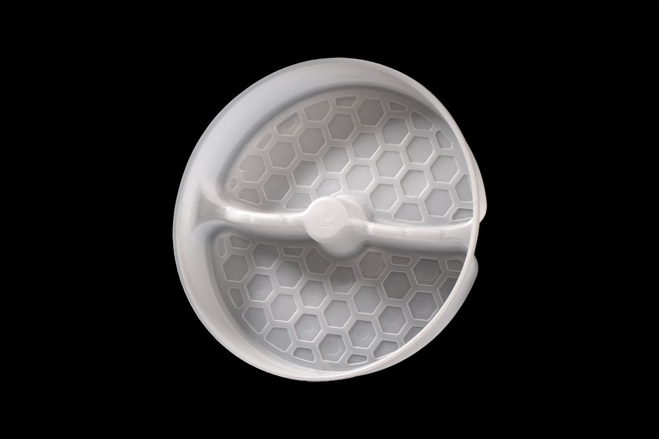 คำอธิบาย:ถาดพลาสติก PP แบบใช้แล้วทิ้ง ทรงกลม แบ่ง 2 ช่อง