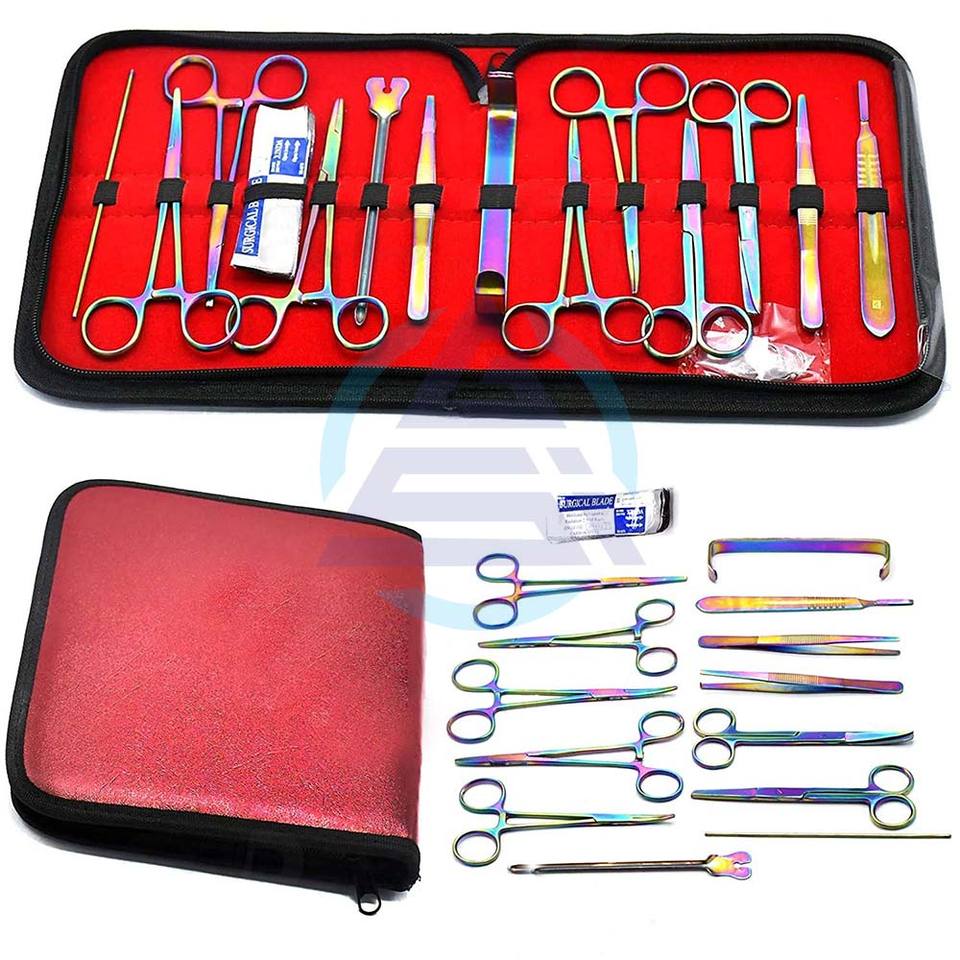 ชุดการผ่านสีรุ้งหลายสี23ชิ้น,ชุดเครื่องมือผ่าสำหรับห้องแล็บขั้นสูงสำหรับนักเรียนกายวิภาคศาสตร์และชีววิทยาห้องปฏิบัติการสัตวแพทย์พฤกษศาสตร์