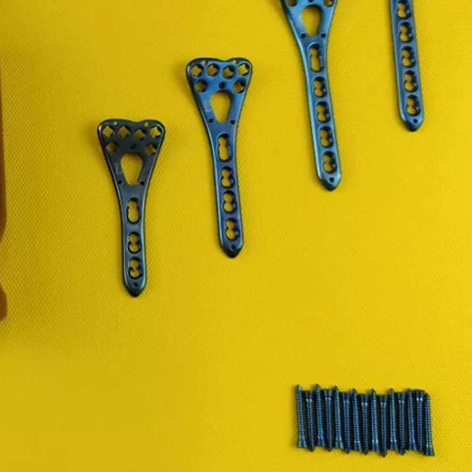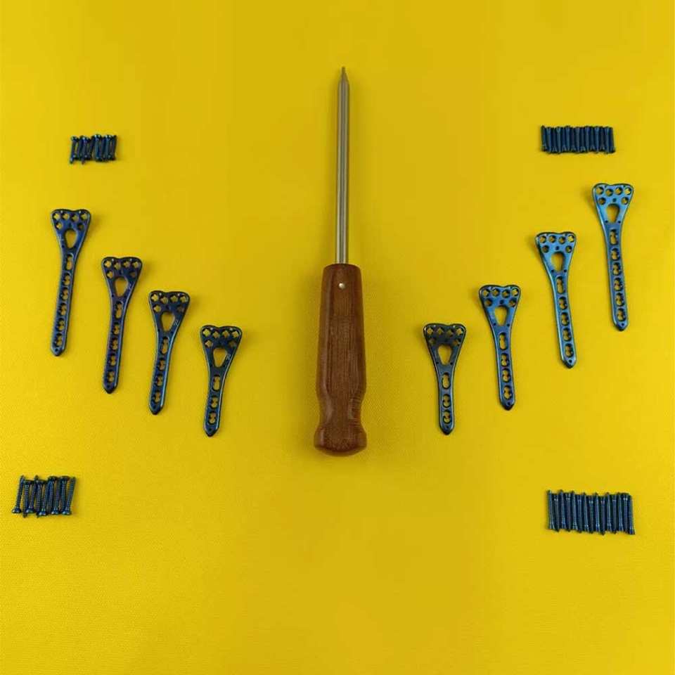 แผ่นยึดกระดูกข้อศอกแบบปรับมุมได้ Distal Radius Volar LCP ขนาด 27 มม. ชุดอุปกรณ์ฝังในกระดูกสแตนเลสสำหรับศัลยกรรมกระดูก ใช้ซ้ำได้สำหรับสุนัข 3-6 รู 5 ชิ้น