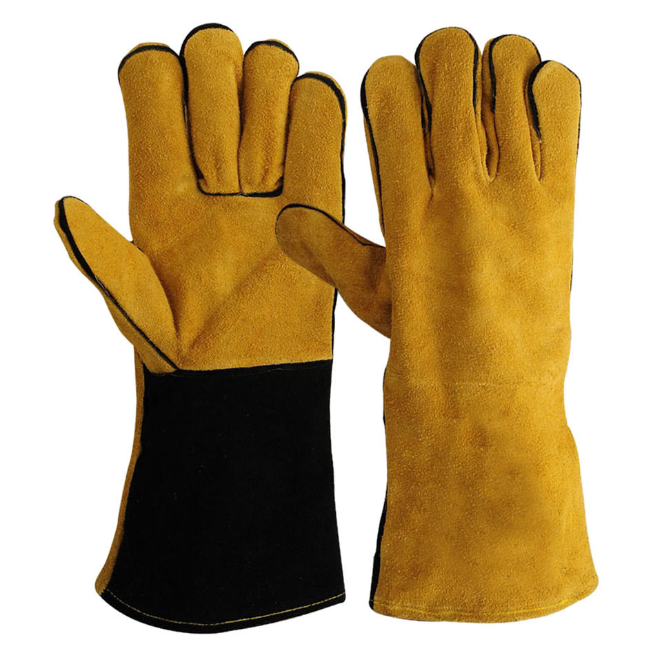 Distil Industries ถุงมือเชื่อมหนังวัว, ถุงมือหนังวัวยาวหนังแท้ถุงมือนิรภัยป้องกันการทำงานอุตสาหกรรมเชื่อม