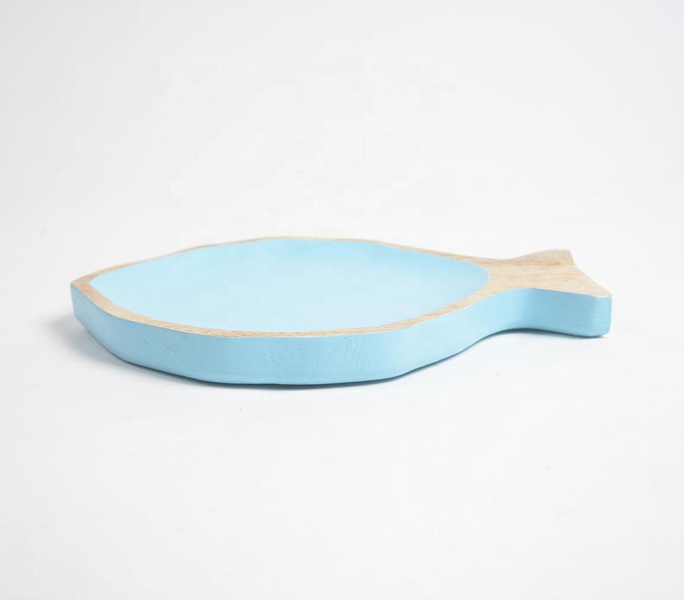 จานไม้มะม่วงรูปปลาสีน้ำเงินสุดสร้างสรรค์